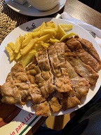 Le cachopo (énorme viande panée genre cordon bleu), les viandes de la Sierra et les tapas, salades et hamburgers bien entendu !...une carte variée et appétissante.